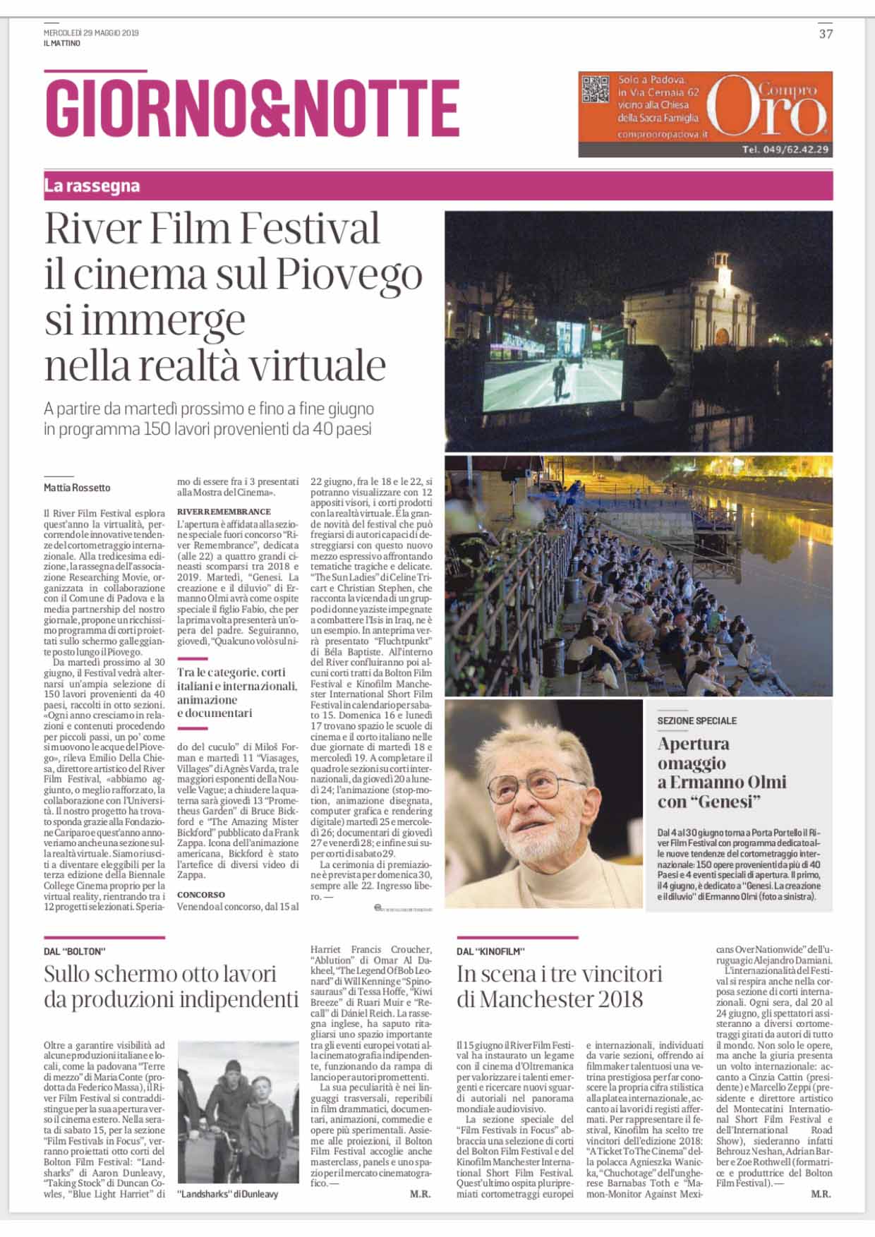 Genesi di Ermanno Olmi apre il River Film Festival – Il Mattino